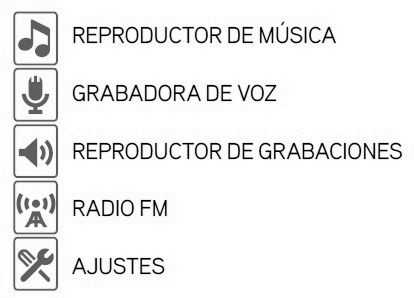 Para volver al menú principal del reproductor, sostén el botón MENU unos segundos. Volver al menú principal pausará la reproducción de música.